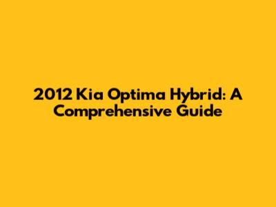2012 Kia Optima Hybrid: A Comprehensive Guide