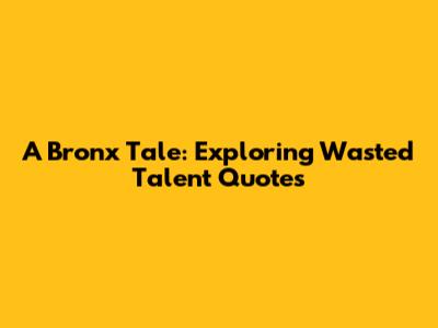 A Bronx Tale: Exploring Wasted Talent Quotes