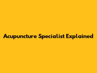 Acupuncture Specialist Explained