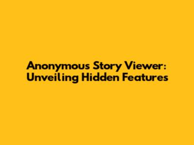 Anonymous Story Viewer: Unveiling Hidden Features