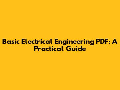 Basic Electrical Engineering PDF: A Practical Guide