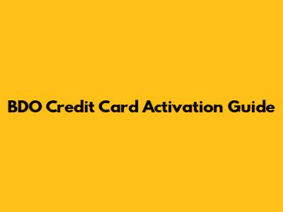 BDO Credit Card Activation Guide