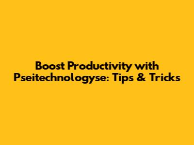 Boost Productivity With Pseitechnologyse: Tips & Tricks