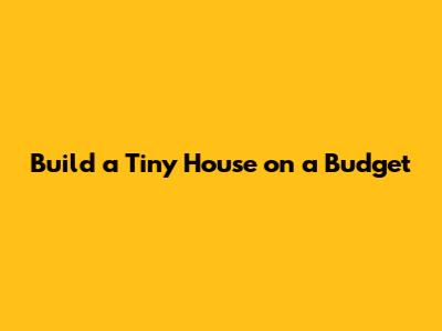 Build A Tiny House On A Budget