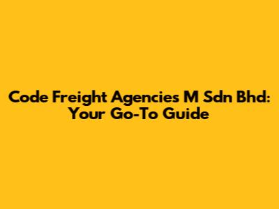 Code Freight Agencies M Sdn Bhd: Your Go-To Guide