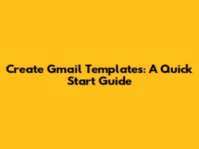 Create Gmail Templates: A Quick Start Guide