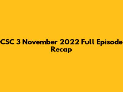CSC 3 November 2022 Full Episode Recap
