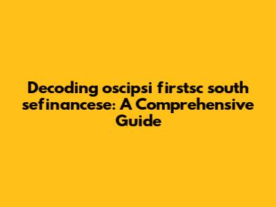 Decoding Oscipsi Firstsc South Sefinancese: A Comprehensive Guide