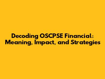 Understanding the Basics: What is OSCPSE Financial?