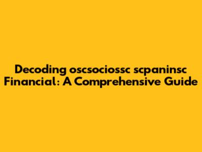 Given the unknown nature of oscsociossc scpaninsc Financial, there are several potential interpretations. It could be related to:
