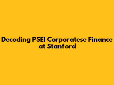 Decoding PSEI Corporatese Finance At Stanford