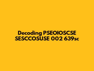 Alright guys, let's dive into the mysterious world of PSEOIOSCSE SESCCOSUSE 002 639sc. This code, or perhaps identifier, has popped up and left many scratching their heads. What does it mean? Where does it come from? And most importantly, why should you care? We're going to break it all down, giving you the lowdown on this cryptic sequence. Think of this as your cheat sheet to understanding PSEOIOSCSE SESCCOSUSE 002 639sc, without all the jargon. We'll explore its potential origins, its implications, and how you might encounter it. So, buckle up, and let's unravel this enigma together. This isn't just about a random string of characters; it's about understanding the systems and contexts where such codes might appear, and what information they could be trying to convey. We'll aim to make this as clear and as easy to digest as possible, so even if you're not a tech wizard, you'll get the gist. Get ready to become a PSEOIOSCSE SESCCOSUSE 002 639sc expert!