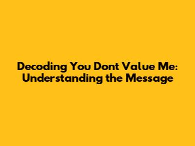 Decoding 'You Don't Value Me': Understanding The Message