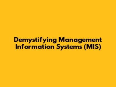 Demystifying Management Information Systems (MIS)