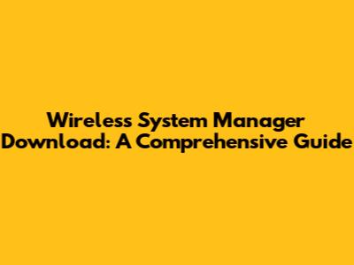Download Wireless System Manager: Free & Easy Guide