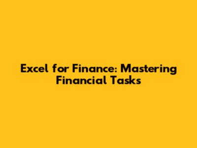 Excel For Finance: Mastering Financial Tasks