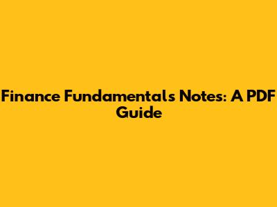 Finance Fundamentals Notes: A PDF Guide