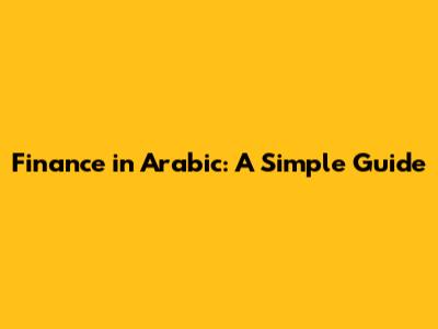 Finance In Arabic: A Simple Guide
