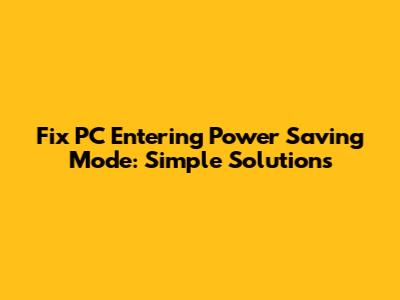 Fix PC Entering Power Saving Mode: Simple Solutions
