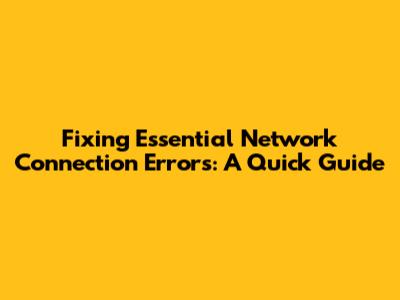 Fixing Essential Network Connection Errors: A Quick Guide