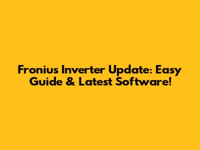 Fronius Inverter Update: Easy Guide & Latest Software!