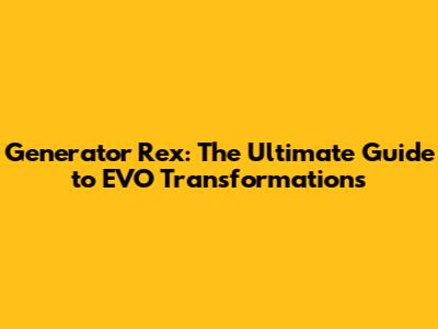 Generator Rex: The Ultimate Guide To EVO Transformations