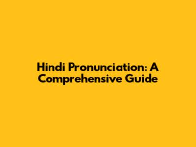 Hindi Pronunciation: A Comprehensive Guide