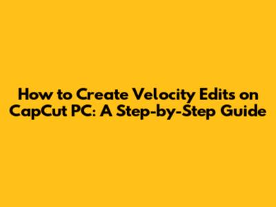 Step-by-Step Guide: Creating Velocity Edits in CapCut PC