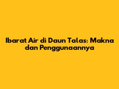 Pernahkah guys mendengar ungkapan "ibarat air di daun talas"? Ungkapan ini seringkali kita dengar dalam percakapan sehari-hari, namun apakah kalian benar-benar memahami apa sih sebenarnya arti dari peribahasa ini? Nah, dalam artikel ini, kita akan mengupas tuntas makna, asal-usul, serta bagaimana peribahasa ini digunakan dalam berbagai konteks. Jadi, simak terus ya!