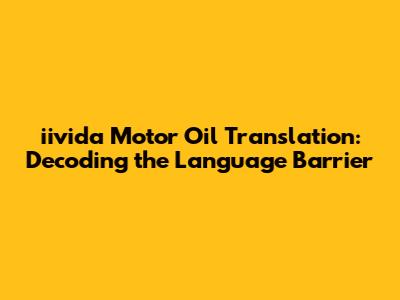 Iivida Motor Oil Translation: Decoding The Language Barrier