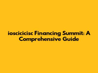 Ioscicicisc Financing Summit: A Comprehensive Guide