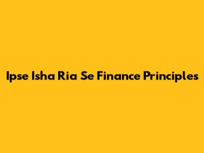 Ipse Isha Ria Se: Finance Principles Explained