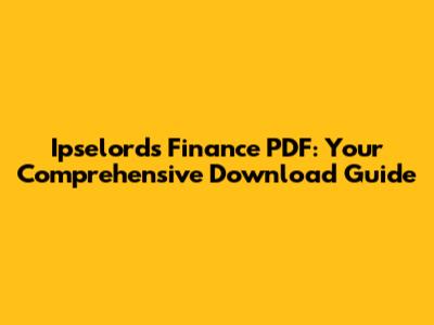 Ipselords Finance PDF: Download Guide