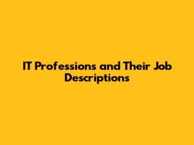 IT Professions And Their Job Descriptions