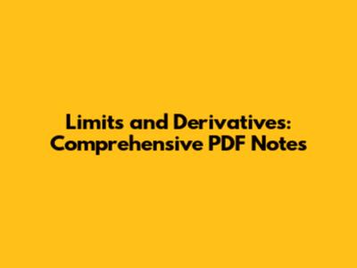 Limits And Derivatives: Comprehensive PDF Notes