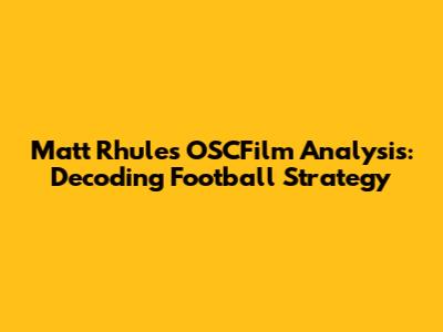 Matt Rhule's OSCFilm Analysis: Decoding Football Strategy