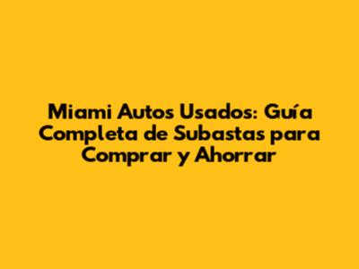 ¿Estás buscando autos usados en Miami, Florida, y quieres encontrar las mejores ofertas? ¿Te has preguntado alguna vez cómo conseguir un coche a un precio increíblemente bajo? La respuesta podría estar en las subastas de autos en Miami. En este artículo, vamos a sumergirnos en el emocionante mundo de las subastas de autos usados en Miami, explorando todo lo que necesitas saber para participar, incluyendo cómo encontrar las mejores subastas de autos en Miami, Florida, y cómo ahorrar dinero en el proceso. Así que, ¡preparados, listos, a subastar!