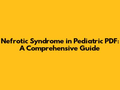 Nefrotic Syndrome In Pediatric PDF: A Comprehensive Guide