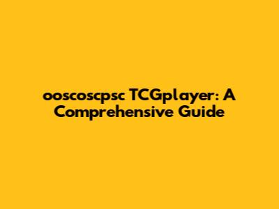 Ooscoscpsc TCGplayer: A Comprehensive Guide