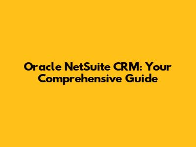 Oracle NetSuite CRM: Your Comprehensive Guide