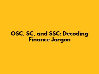 OSC, SC, And SSC: Decoding Finance Jargon