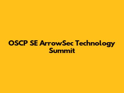 OSCP SE ArrowSec Tech Summit: What You Need To Know
