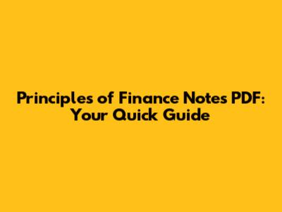 Principles Of Finance Notes PDF: Your Quick Guide