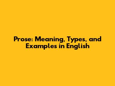 Prose: Meaning, Types, And Examples In English