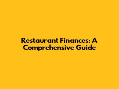 Restaurant Finances: A Comprehensive Guide