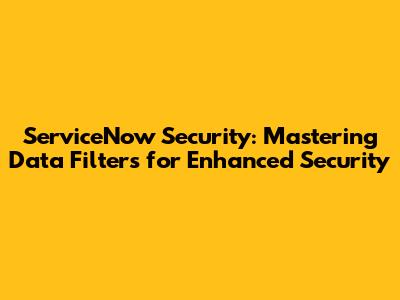 Hey guys! Let's dive into a crucial aspect of ServiceNow security: data filters. If you're serious about keeping your ServiceNow instance locked down tight and ensuring only the right people see the right data, then understanding and implementing data filters is an absolute must. In this article, we'll break down what ServiceNow data filters are, why they're so important, and how you can use them to bolster your overall security posture. Think of it as your friendly guide to navigating the world of ServiceNow security, making sure your sensitive information stays safe and sound. So, buckle up, and let's get started!