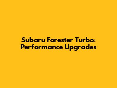 Subaru Forester Turbo: Performance Upgrades