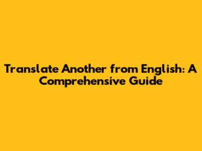 Translate 'Another' From English: A Comprehensive Guide