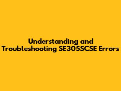 Understanding And Troubleshooting SE305SCSE Errors