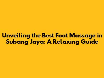 Unveiling The Best Foot Massage In Subang Jaya: A Relaxing Guide